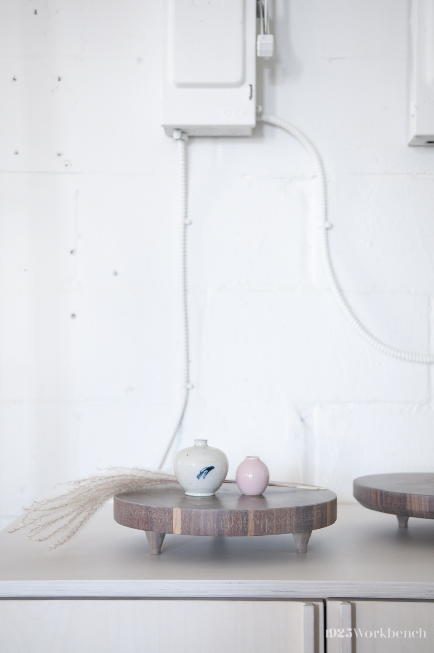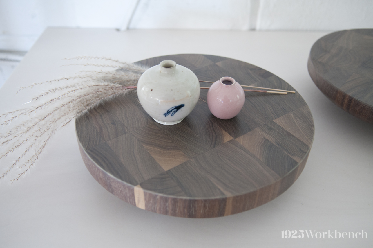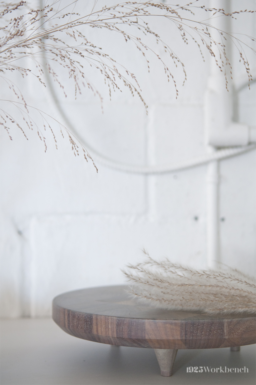 Solid walnut butcher block. Finished with a durable oil finish in a soft organic colour instead of the intense rich colour walnut is known for. Made for styling your table with delicious cakes, cute vases, fruits, flowers…let your imagination go wild here!